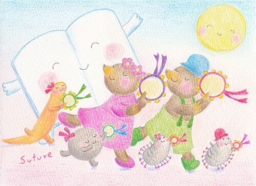 こんにちは! ぼくは ノートです。 まっしろな お国から まっしろな こころで うまれてきたの。 まっしろな こころで いると みーんな みーんな いろーんな おはなしや 絵を たくさん たくさん かいてくれるんだよ。 トカゲさんが かいてくれたのは お花さん…