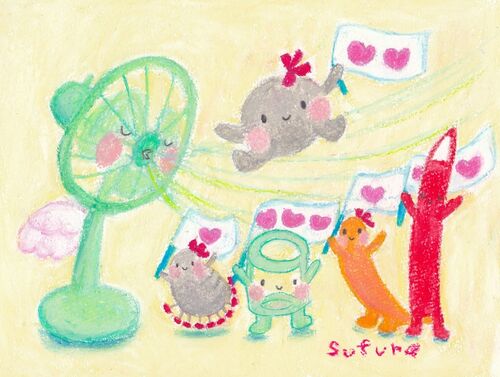 せんぷうきさんが おそらを みてる なつかしそうに おそらを みてる さっきまで おやねで あそんでいた すずめさんを おもいだして いるのかな。 せんぷうきさんが おにわを みてる うれしそうに おにわを みてる のらねこさんが あそびに きたのかしら。 カ…